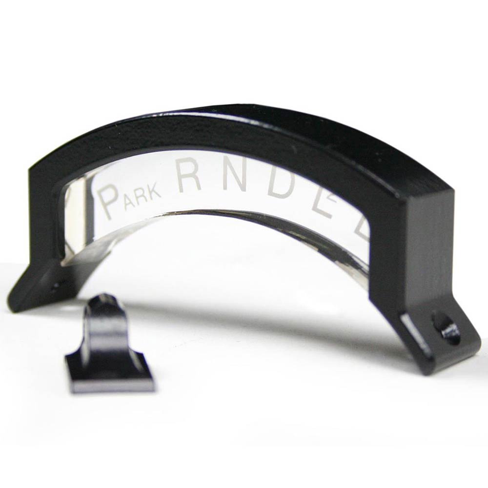 Add some flair to your acrylic indicator with a sleek aluminum housing! ididit's shift indicator with housing comes complete with acrylic indicator, matching aluminum pointer and two short screws that are used to affix the housing and indicator to your column. Reads: L1 L2 D N R P.