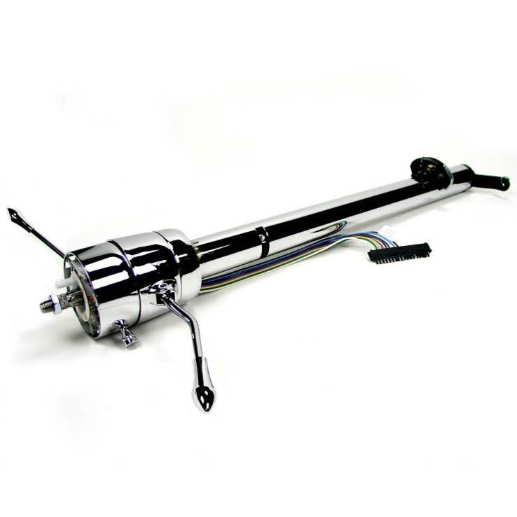 Add the convenience of a column shift to your classic! This space-saving straight column comes complete with a neutral safety switch, as well as everything you'll need to use your original dash indicator(aftermarket shift indicator sold separately). The shift pattern on the column allows you to use either a 3 or 4-speed automatic transmission (except early Powerglides, as they have a reverse pattern transmission). A solid shift linkage(new or original)is required for installation and will attach to the lower shift arm provided on the column. This column is designed for your front steer rack and comes with an extended lower shaft to lessen the angle of your u-joint.
