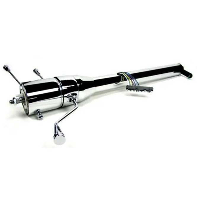 If a tilt column takes up to much space in your car and a column shift is a must, then our Straight Column Shift column will make the perfect fit! By removing the tilt portion, the head of this column is a full two inches shorter than our standard tilt column shift. This column features a removable, indexable lower shift arm, with 12 possible positions. Self-canceling turn signals, 4-way flashers, horn wiring and our standard dress-up kit are also included. Available in paintable steel, chrome plated steel, or black powder coated. Will work with GM, Ford and Chrysler 3 or 4 speed automatic transmissions.