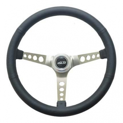 GT3 Retro Mustang 4 Hole 3 Spoke Steering Wheel - Black Lea