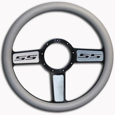 1/2 Wrap SS Logo 13.5" Steering Wheel - Gray Grip Machined