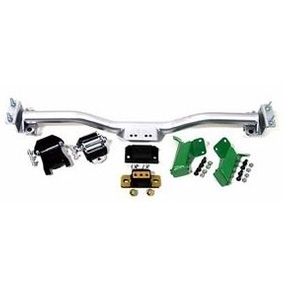 Bolt-in engine brackets for small and big block engines in 55-57 Chevys. Brackets move engine forward for HEI clearance (3/4" SB & 1 1/4" BB). Kit features: Brackets and hardware only.