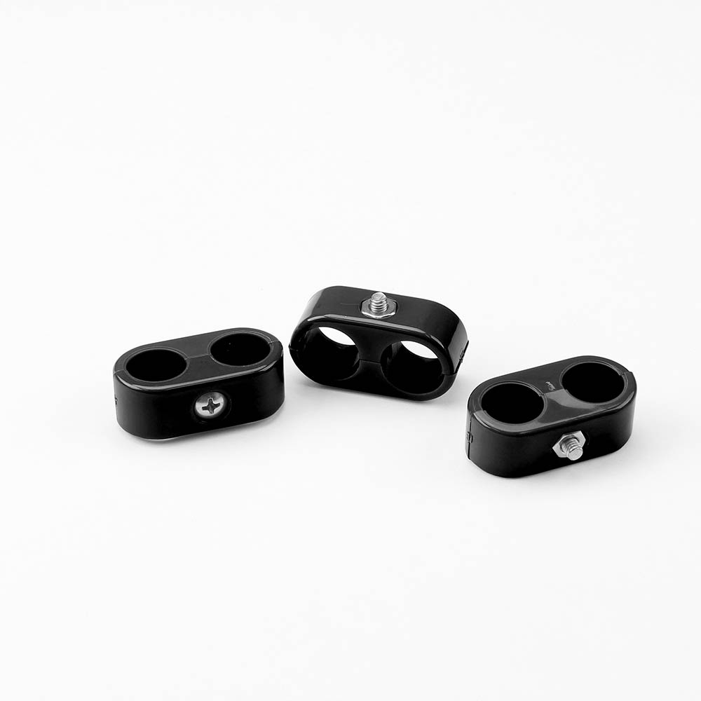 Black Plastic Dual Line Clamps 9/16"-9/16" or 6 AN - 3 pc