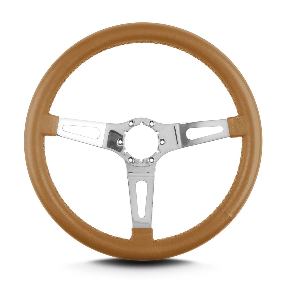 Teardrop 3 Spoke 14" Polish Steering Wheel Std Grip Chestnut