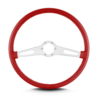 Teardrop 2 Spoke 15" Satin Steering Wheel Thin Grip- Brt Red