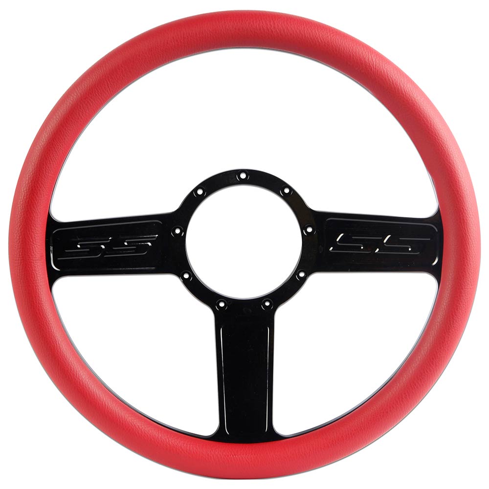 1/2 Wrap SS Logo 13.5" Steering Wheel - Red Grip Gloss Black