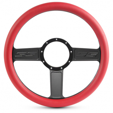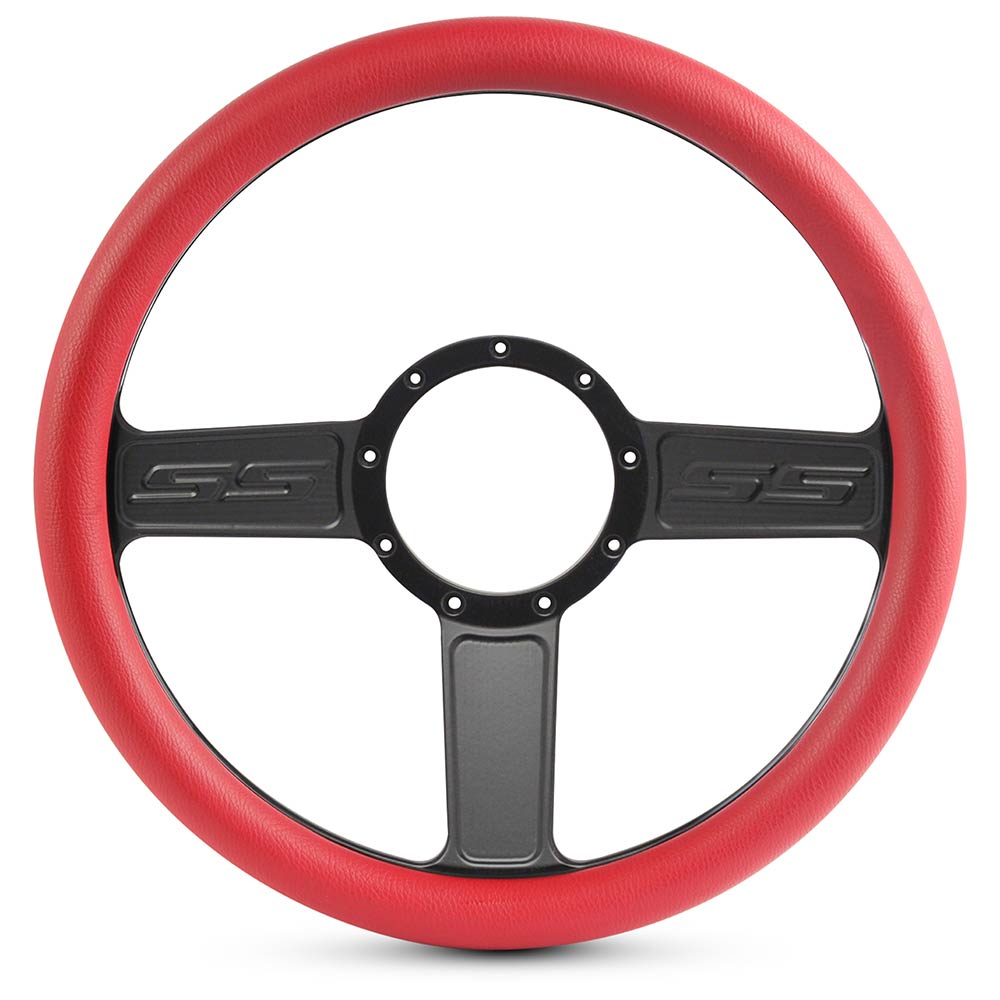 1/2 Wrap SS Logo 13.5" Steering Wheel - Red Grip Matte Black