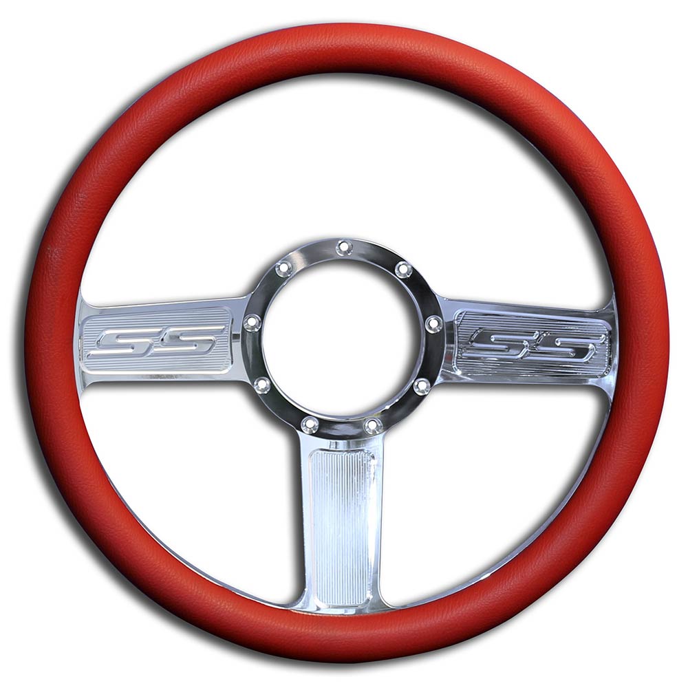 1/2 Wrap SS Logo 13.5" Steering Wheel - Red Grip Polished