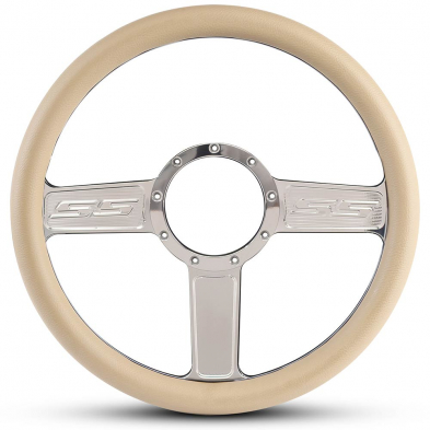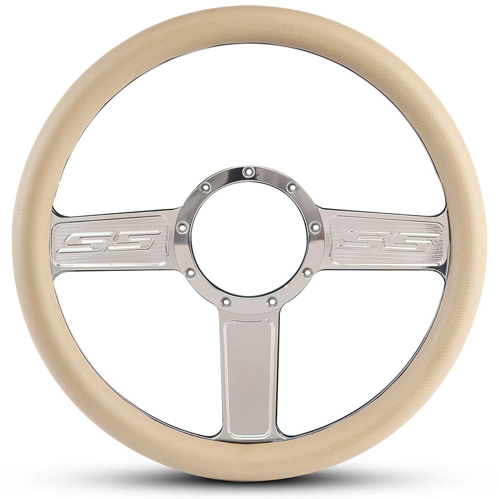 1/2 Wrap SS Logo 13.5" Steering Wheel - Tan Grip Polished