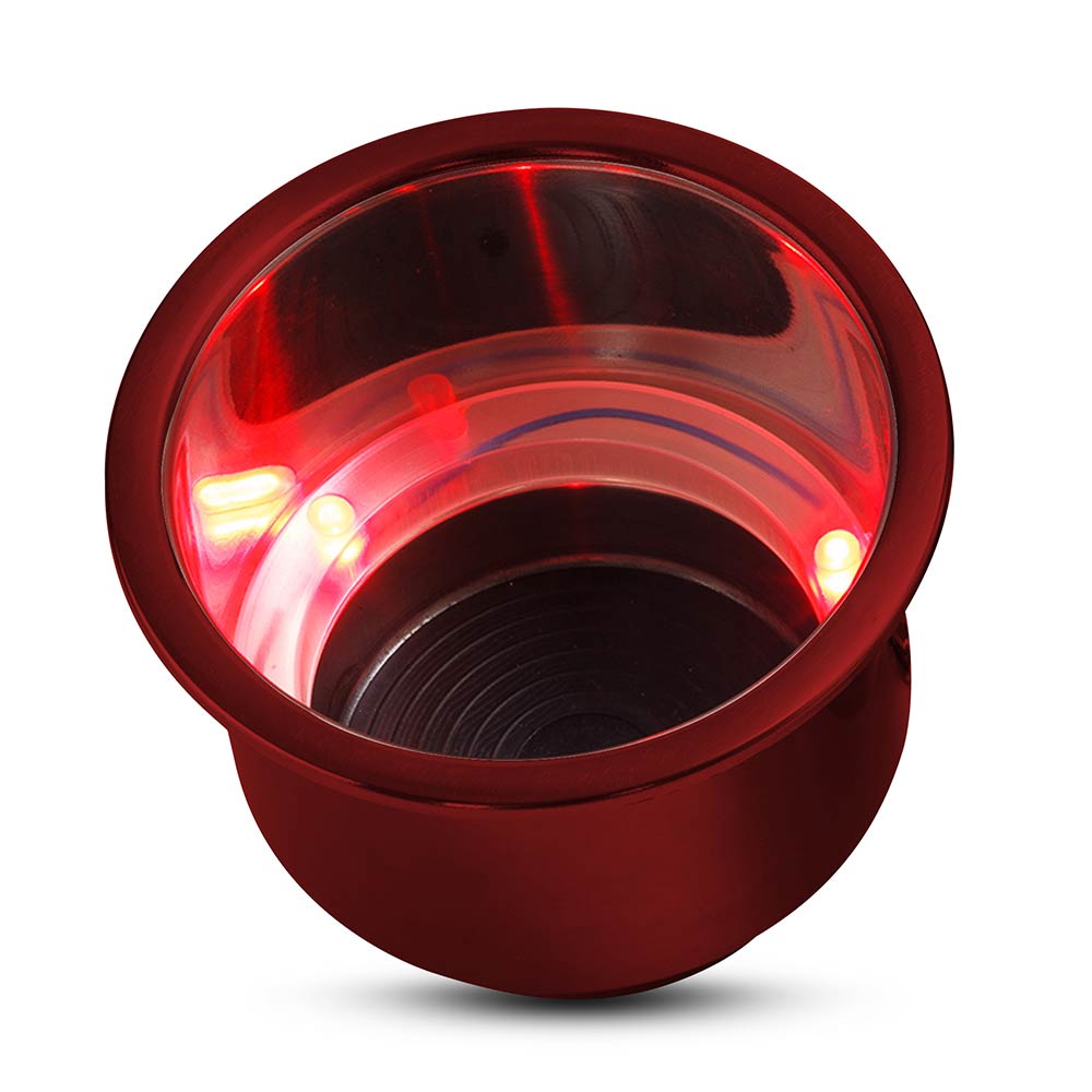 Stainless Steel Cup Holder with Red LED - Gloss Red