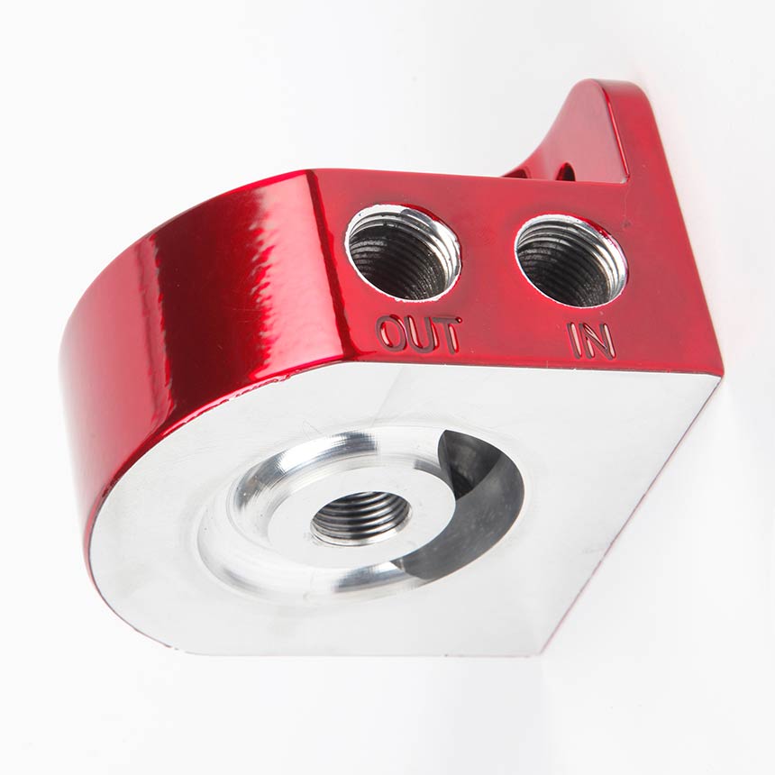 Billet Universal Oil Filter Head - Gloss Red