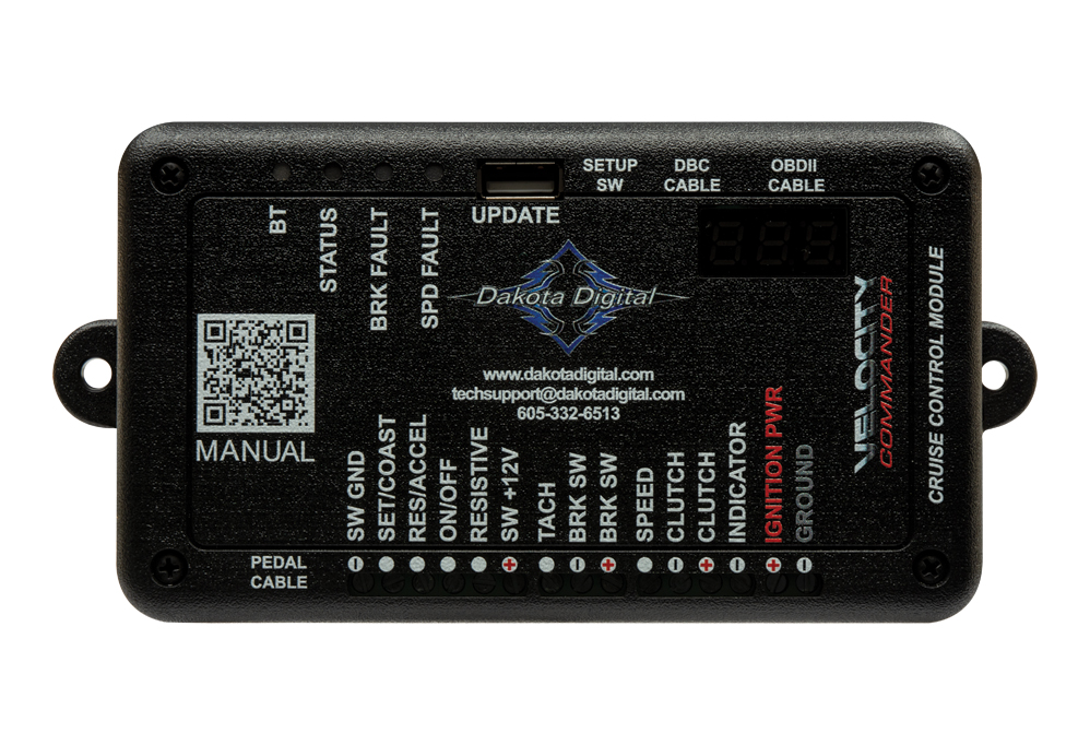 Dakota Digital's VCM-100 Series cruise control is a perfect fit for your newer drive-by-wire GM, Ford or Mopar drivetrain and electronics, running the OEM OBD-II/ CAN or even an Aftermarket EFI system with electronic pedal control. Our proprietary setup wizard effortlessly guides you through the installation and setup, ensuring the smoothest and most reliable cruise operation on the market.