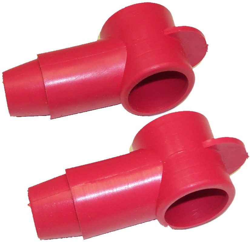 Overview: This product includes two red rubber boots specifically crafted to cover battery terminal studs, preventing unintended electrical grounding and enhancing safety in your vehicle's electrical system.